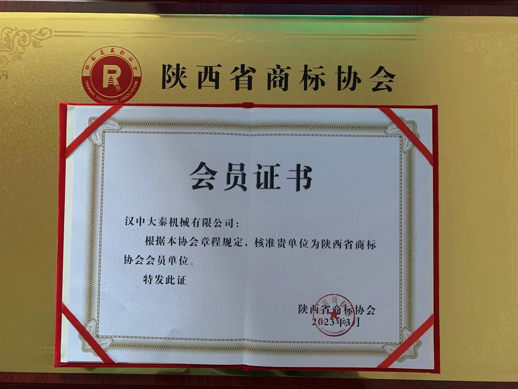 3月30日,陜西省商標(biāo)協(xié)會成立大會暨會員大會在陜西大會堂舉行,漢中大秦機械有限公司應(yīng)邀出席會議,并成為協(xié)會首批會員單位。